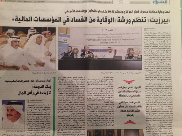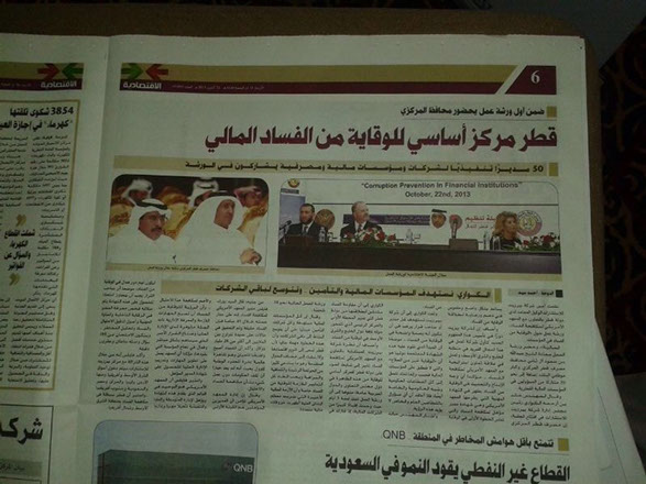 The event was marked by the inauguration of “Corruption Prevention in Financial Institution” in the presence of Qatar Central Bank (QCB) Governor H E Sheikh Abdullah bin Saud Al Thani here yesterday.